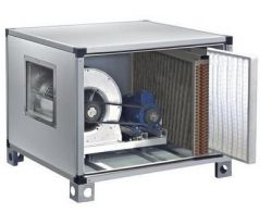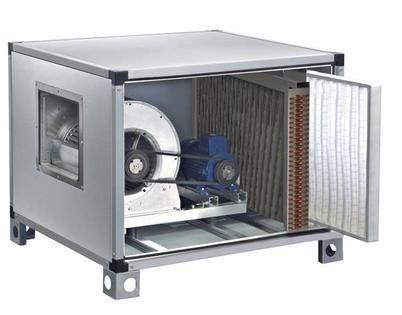 Si tratta di un'unità di riscaldamento Aria composta da ventilatore centrifugo, doppia aspirazione , con motore a trasmissione, batteria di scambio ad acqua e filtro pieghettato. Telaio in profilato d'alluminio e pannellatura in lamiera preverniciata con rivestimento interno fonoassorbente, autoestinguente.