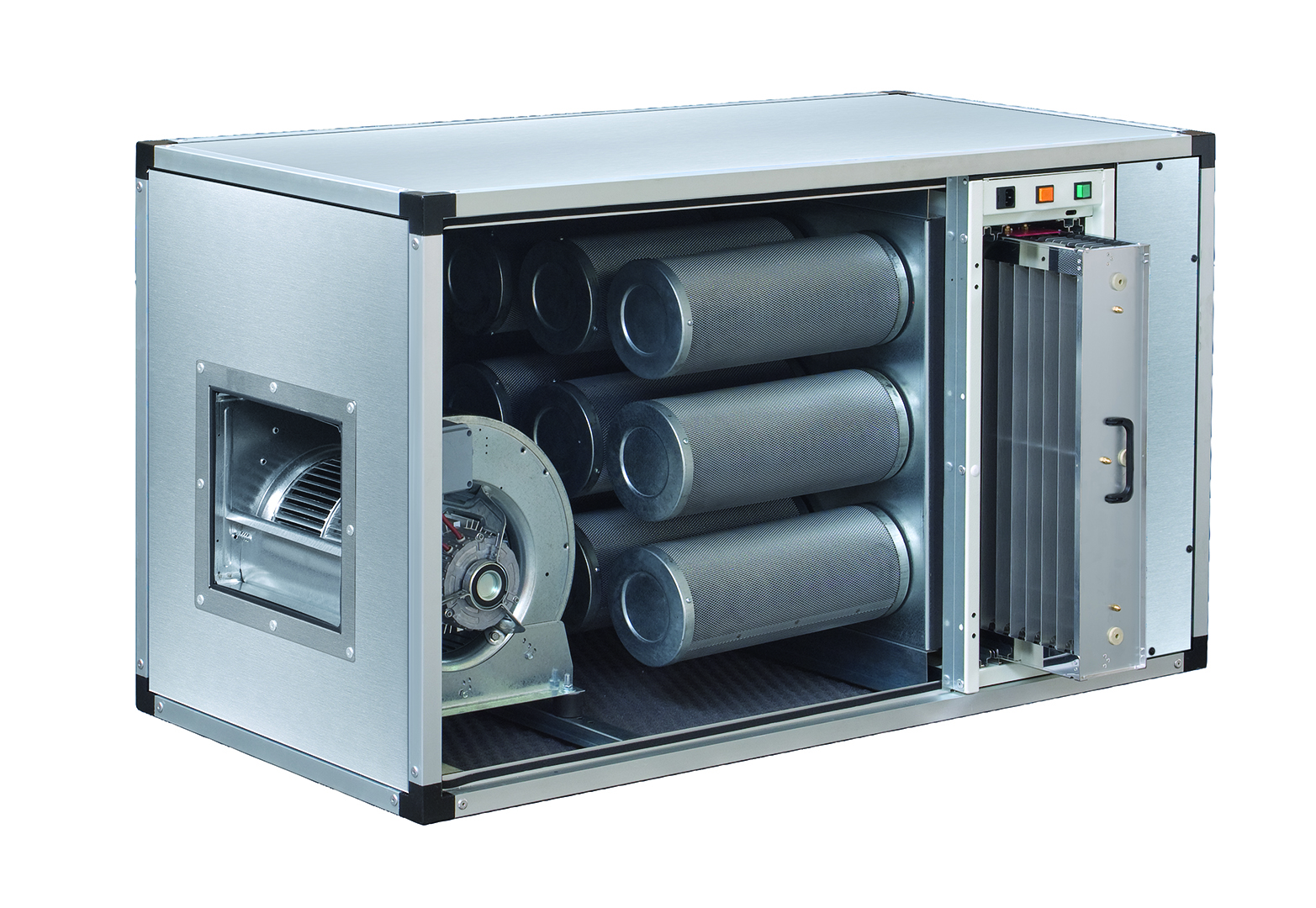 Si tratta di una centralina di deodorizzazione e filtrazione dell'aria completa di ventilatore a doppia aspirazione a rotore esterno. È composto da prefiltro aria tipo EU3, 85% gravimetrico con carbone vegetale attivo in cilindretti tipo 207/C e filtro elettrostatico ad alta intensità con termostato di protezione . Telaio in profilato d'alluminio e doppia pannellatura in lamiera zincata all' interno e acciaio inossidabile all'esterno.