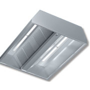 Cappa aspirante professionale progettata in acciaio Inox, realizzata con saldatura a punti e provvista di canalina antisgocciolamento.