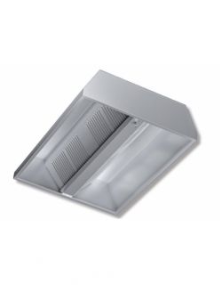 Cappa aspirante professionale progettata in acciaio Inox, realizzata con saldatura a punti e provvista di canalina antisgocciolamento.