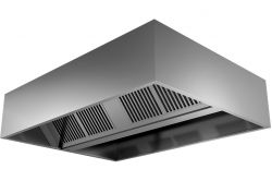 Cappa aspirante professionale progettata in acciaio Inox, realizzata con saldatura a punti e provvista di canalina antisgocciolamento.
