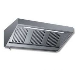 Cappa aspirante professionale progettata in acciaio Inox, realizzata con saldatura a punti e provvista di canalina anti sgocciolamento.