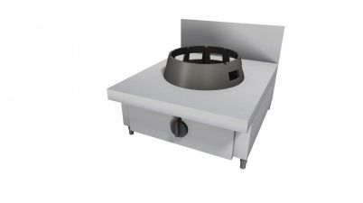Cucina Wok modello da banco realizzata in acciaio inox Aisi 340, dotata di piedini regolabili, piano liscio in acciaio spessore 2.5 mm rinforzati e padella raccogli goccia estraibile sotto i bruciatori.