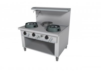 Cucina Wok modello con vano giorno realizzata in acciaio inox Aisi 340, dotata di piedini regolabili e piano liscio in acciaio spessore 2.5 mm rinforzati. dispone di: