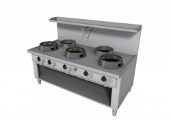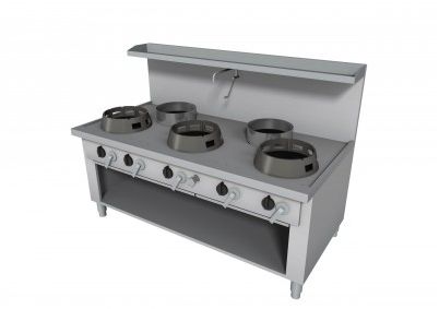 Cucina Wok modello con vano giorno realizzata in acciaio inox Aisi 340, dotata di piedini regolabili e piano liscio in acciaio spessore 2.5 mm rinforzati. dispone di: