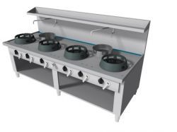 Cucina Wok modello con vano giorno realizzata in acciaio inox Aisi 340, dotata di piedini regolabili e piano liscio in acciaio spessore 2.5 mm rinforzati. dispone di: