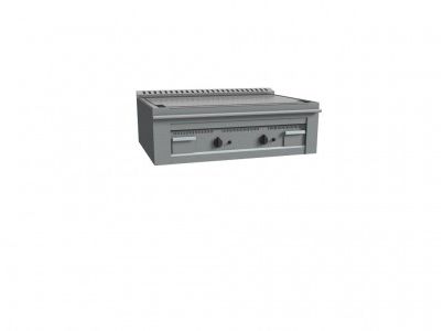 - cassettino raccolta residui di cottura. Uniformità di distribuzione della temperatura garantita dai bruciatori a tre tubi fiamma ad alto rendimento; regolazione temperatura tramite rubinetto termostatato grazie ai sensori di controllo montati direttamente sulla piastra