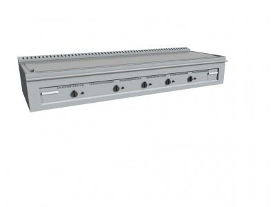 - cassettino raccolta residui di cottura. Uniformità di distribuzione della temperatura garantita dai bruciatori a tre tubi fiamma ad alto rendimento; regolazione temperatura tramite rubinetto termostatato grazie ai sensori di controllo montati direttamente sulla piastra