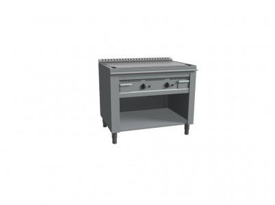 - cassettino raccolta residui di cottura. Uniformità di distribuzione della temperatura garantita dai bruciatori a tre tubi fiamma ad alto rendimento; regolazione temperatura tramite rubinetto termostatato grazie ai sensori di controllo montati direttamente sulla piastra