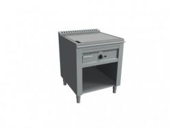 - cassettino raccolta residui di cottura. Uniformità di distribuzione della temperatura garantita dai bruciatori a tre tubi fiamma ad alto rendimento; regolazione temperatura tramite rubinetto termostatato grazie ai sensori di controllo montati direttamente sulla piastra