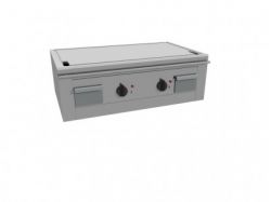 Teppanyaki elettrico con zona cottura realizzata in acciaio inox AISI 304, dotata di piedini regolabili e piastra di cottura liscia in acciaio (spessore mm.15). Cetificazione di conformità CE/IMQ.