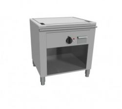 Teppanyaki elettrico con zona cottura realizzata in acciaio inox AISI 304, dotata di piedini regolabili e piastra di cottura liscia in acciaio (spessore mm.15). Cetificazione di conformità CE/IMQ.