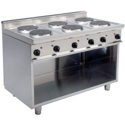 Piano Cottura Elettrico Su Vano a Giorno a 6 Piastre Tonde, Con Potenza 15,6 kW e Dimensioni: 1200x700x850h. Norma CE