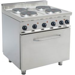 Piano Cottura Elettrico a 4 Piastre Tonde, Con Forno Elettrico Da 5,48 kW, Con Potenza 15,88 kW e Dimensioni: 800x700x850h. Norma CE