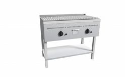 Bistecchiera a Pietra Lavica realizzata in acciaio inox AISI 304,puntata elettronicamente con satinatura Scotch-Brite e dotata di piedini regolabili. Fornita di griglia a "V" per la raccolta dei grassi di cottura, di canalina frontale con foro di scarico e cassettino raccolta olio e grassi estraibile. Bruciatori gas indipendenti a tre tubi con rubinetto valvolato, termocoppia e accensione piezo elettrica, con regolazione temperatura max-min. Padella raccolta residui estraibile sotto i bruciatori. Manopole in materiale atermico. Certificazione di conformità CE/IMQ.