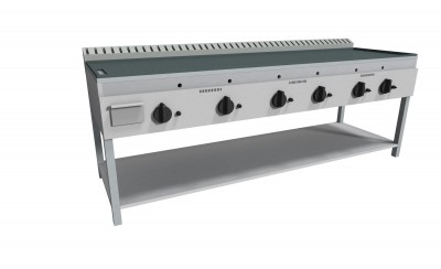 Piastra Fry-Top su Tavolo Gambe con Ripiano Cuoci Piadina e Salsiccia a Gas 2200x850x700