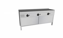 Piastra Cuoci Piadina e Salsiccia elettrica realizzata in acciaio inox AISI 304 dotata di piano di cottura liscio, (bordato su quattro lati, con foro di scarico e cassettino raccolta residui) e di piedini regolabili. Grazie al fissaggio dei blocchi resistenze in acciaio nella parte inferiore vi è uniformità di distribuzione della temperatura. Potenza kW 2,2 cadauno 230V~50Hz, dispone di interruttore e termostato di lavoro per regolazione temperatura 66 – 324°, con lampada spia generale e spia di funzionamento elementi riscaldanti. Manopole in materiale atermico. Certificazione di conformità CE/IMQ.
