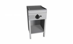 Piastra Cuoci Piadina e Salsiccia elettrica realizzata in acciaio inox AISI 304 dotata di piano di cottura liscio, (bordato su quattro lati, con foro di scarico e cassettino raccolta residui) e di piedini regolabili. Grazie al fissaggio dei blocchi resistenze in acciaio nella parte inferiore vi è uniformità di distribuzione della temperatura. Potenza kW 2,2 cadauno 230V~50Hz, dispone di interruttore e termostato di lavoro per regolazione temperatura 66 – 324°, con lampada spia generale e spia di funzionamento elementi riscaldanti. Manopole in materiale atermico. Certificazione di conformità CE/IMQ.