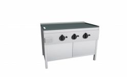 Piastra Cuoci Piadina e Salsiccia elettrica realizzata in acciaio inox AISI 304 dotata di piano di cottura liscio, (bordato su quattro lati, con foro di scarico e cassettino raccolta residui) e di piedini regolabili. Grazie al fissaggio dei blocchi resistenze in acciaio nella parte inferiore vi è uniformità di distribuzione della temperatura. Potenza kW 2,2 cadauno 230V~50Hz, dispone di interruttore e termostato di lavoro per regolazione temperatura 66 – 324°, con lampada spia generale e spia di funzionamento elementi riscaldanti. Manopole in materiale atermico. Certificazione di conformità CE/IMQ.