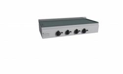 Piastra Cuoci Piadina e Salsiccia elettrica realizzata in acciaio inox AISI 304 dotata di piano di cottura liscio, (bordato su quattro lati, con foro di scarico e cassettino raccolta residui) e di piedini regolabili. Grazie al fissaggio dei blocchi resistenze in acciaio nella parte inferiore vi è uniformità di distribuzione della temperatura. Potenza kW 2,2 cadauno 230V~50Hz, dispone di interruttore e termostato di lavoro per regolazione temperatura 66 – 324°, con lampada spia generale e spia di funzionamento elementi riscaldanti. Manopole in materiale atermico. Certificazione di conformità CE/IMQ.