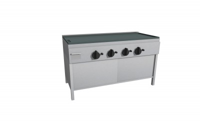 Piastra Cuoci Piadina e Salsiccia elettrica realizzata in acciaio inox AISI 304 dotata di piano di cottura liscio, (bordato su quattro lati, con foro di scarico e cassettino raccolta residui) e di piedini regolabili. Grazie al fissaggio dei blocchi resistenze in acciaio nella parte inferiore vi è uniformità di distribuzione della temperatura. Potenza kW 2,2 cadauno 230V~50Hz, dispone di interruttore e termostato di lavoro per regolazione temperatura 66 – 324°, con lampada spia generale e spia di funzionamento elementi riscaldanti. Manopole in materiale atermico. Certificazione di conformità CE/IMQ.