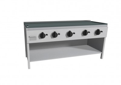 Piastra Cuoci Piadina e Salsiccia elettrica realizzata in acciaio inox AISI 304 dotata di piano di cottura liscio, (bordato su quattro lati, con foro di scarico e cassettino raccolta residui) e di piedini regolabili. Grazie al fissaggio dei blocchi resistenze in acciaio nella parte inferiore vi è uniformità di distribuzione della temperatura. Potenza kW 2,2 cadauno 230V~50Hz, dispone di interruttore e termostato di lavoro per regolazione temperatura 66 – 324°, con lampada spia generale e spia di funzionamento elementi riscaldanti. Manopole in materiale atermico. Certificazione di conformità CE/IMQ.