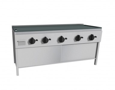 Piastra Cuoci Piadina e Salsiccia elettrica realizzata in acciaio inox AISI 304 dotata di piano di cottura liscio, (bordato su quattro lati, con foro di scarico e cassettino raccolta residui) e di piedini regolabili. Grazie al fissaggio dei blocchi resistenze in acciaio nella parte inferiore vi è uniformità di distribuzione della temperatura. Potenza kW 2,2 cadauno 230V~50Hz, dispone di interruttore e termostato di lavoro per regolazione temperatura 66 – 324°, con lampada spia generale e spia di funzionamento elementi riscaldanti. Manopole in materiale atermico. Certificazione di conformità CE/IMQ.