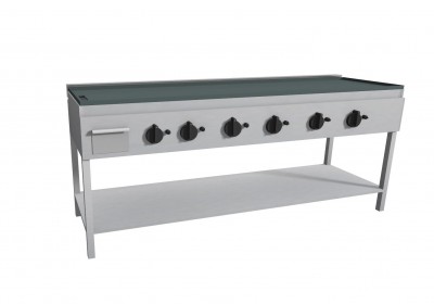 Piastra Elettrica Fry-Top su Tavolo Gambe con Ripiano Cuoci Piadina e Salsiccia 2200x850x700