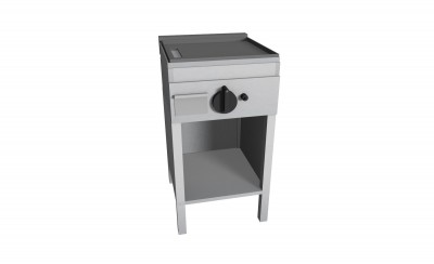 Piastra Cuoci Piadina e Salsiccia elettrica realizzata in acciaio inox AISI 304 dotata di piano di cottura liscio, (bordato su quattro lati, con foro di scarico e cassettino raccolta residui) e di piedini regolabili. Grazie al fissaggio dei blocchi resistenze in acciaio nella parte inferiore vi è uniformità di distribuzione della temperatura. Potenza kW 2,2 cadauno 230V~50Hz, dispone di interruttore e termostato di lavoro per regolazione temperatura 66 – 324°, con lampada spia generale e spia di funzionamento elementi riscaldanti. Manopole in materiale atermico. Certificazione di conformità CE/IMQ.