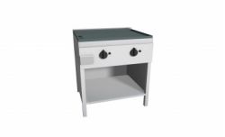 Piastra Cuoci Piadina e Salsiccia elettrica realizzata in acciaio inox AISI 304 dotata di piano di cottura liscio, (bordato su quattro lati, con foro di scarico e cassettino raccolta residui) e di piedini regolabili. Grazie al fissaggio dei blocchi resistenze in acciaio nella parte inferiore vi è uniformità di distribuzione della temperatura. Potenza kW 2,2 cadauno 230V~50Hz, dispone di interruttore e termostato di lavoro per regolazione temperatura 66 – 324°, con lampada spia generale e spia di funzionamento elementi riscaldanti. Manopole in materiale atermico. Certificazione di conformità CE/IMQ.