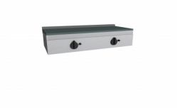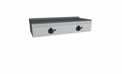 Piastra Cuoci Piadina elettrica realizzata in acciaio inox AISI 304 dotata di piano di cottura liscio e di piedini regolabili. Grazie al fissaggio dei blocchi resistenze in acciaio nella parte inferiore vi è uniformità di distribuzione della temperatura. Potenza kW 2,2 cadauno 230V~50Hz, dispone di interruttore e termostato di lavoro per regolazione temperatura 66 – 324°, con lampada spia generale e spia di funzionamento elementi riscaldanti. Manopole in materiale atermico. Certificazione di conformità CE/IMQ.