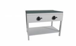 Piastra Cuoci Piadina elettrica realizzata in acciaio inox AISI 304 dotata di piano di cottura liscio e di piedini regolabili. Grazie al fissaggio dei blocchi resistenze in acciaio nella parte inferiore vi è uniformità di distribuzione della temperatura. Potenza kW 2,2 cadauno 230V~50Hz, idispone di nterruttore e termostato di lavoro per regolazione temperatura 66 – 324°, con lampada spia generale e spia di funzionamento elementi riscaldanti. Manopole in materiale atermico. Certificazione di conformità CE/IMQ.