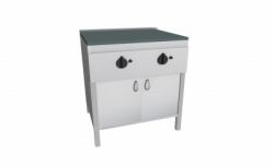 Piastra Cuoci Piadina elettrica realizzata in acciaio inox AISI 304 dotata di piano di cottura liscio e di piedini regolabili. Grazie al fissaggio dei blocchi resistenze in acciaio nella parte inferiore vi è uniformità di distribuzione della temperatura. Potenza kW 2,2 cadauno 230V~50Hz, dispone di interruttore e termostato di lavoro per regolazione temperatura 66 – 324°, con lampada spia generale e spia di funzionamento elementi riscaldanti. Manopole in materiale atermico. Certificazione di conformità CE/IMQ.