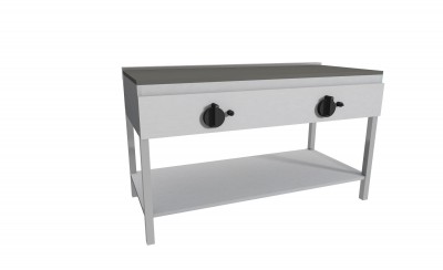 Piastra Cuoci Piadina elettrica realizzata in acciaio inox AISI 304 dotata di piano di cottura liscio e di piedini regolabili. Grazie al fissaggio dei blocchi resistenze in acciaio nella parte inferiore vi è uniformità di distribuzione della temperatura. Potenza kW 2,2 cadauno 230V~50Hz, idispone di nterruttore e termostato di lavoro per regolazione temperatura 66 – 324°, con lampada spia generale e spia di funzionamento elementi riscaldanti. Manopole in materiale atermico. Certificazione di conformità CE/IMQ.