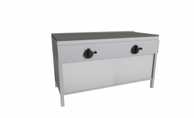Piastra Cuoci Piadina elettrica realizzata in acciaio inox AISI 304 dotata di piano di cottura liscio e di piedini regolabili. Grazie al fissaggio dei blocchi resistenze in acciaio nella parte inferiore vi è uniformità di distribuzione della temperatura. Potenza kW 2,2 cadauno 230V~50Hz, dispone di interruttore e termostato di lavoro per regolazione temperatura 66 – 324°, con lampada spia generale e spia di funzionamento elementi riscaldanti. Manopole in materiale atermico. Certificazione di conformità CE/IMQ.