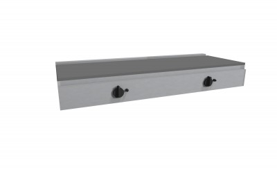 Piastra Cuoci Piadina elettrica realizzata in acciaio inox AISI 304 dotata di piano di cottura liscio e di piedini regolabili. Grazie al fissaggio dei blocchi resistenze in acciaio nella parte inferiore vi è uniformità di distribuzione della temperatura. Potenza kW 2,2 cadauno 230V~50Hz, dispone di interruttore e termostato di lavoro per regolazione temperatura 66 – 324°, con lampada spia generale e spia di funzionamento elementi riscaldanti. Manopole in materiale atermico. Certificazione di conformità CE/IMQ.