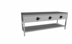 Piastra Cuoci Piadina elettrica realizzata in acciaio inox AISI 304 dotata di piano di cottura liscio e di piedini regolabili. Grazie al fissaggio dei blocchi resistenze in acciaio nella parte inferiore vi è uniformità di distribuzione della temperatura. Potenza kW 2,2 cadauno 230V~50Hz, idispone di nterruttore e termostato di lavoro per regolazione temperatura 66 – 324°, con lampada spia generale e spia di funzionamento elementi riscaldanti. Manopole in materiale atermico. Certificazione di conformità CE/IMQ.