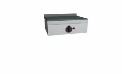 Piastra Cuoci Piadina elettrica realizzata in acciaio inox AISI 304 dotata di piano di cottura liscio e di piedini regolabili. Grazie al fissaggio dei blocchi resistenze in acciaio nella parte inferiore vi è uniformità di distribuzione della temperatura. Potenza kW 2,2 cadauno 230V~50Hz, dispone di interruttore e termostato di lavoro per regolazione temperatura 66 – 324°, con lampada spia generale e spia di funzionamento elementi riscaldanti. Manopole in materiale atermico. Certificazione di conformità CE/IMQ.