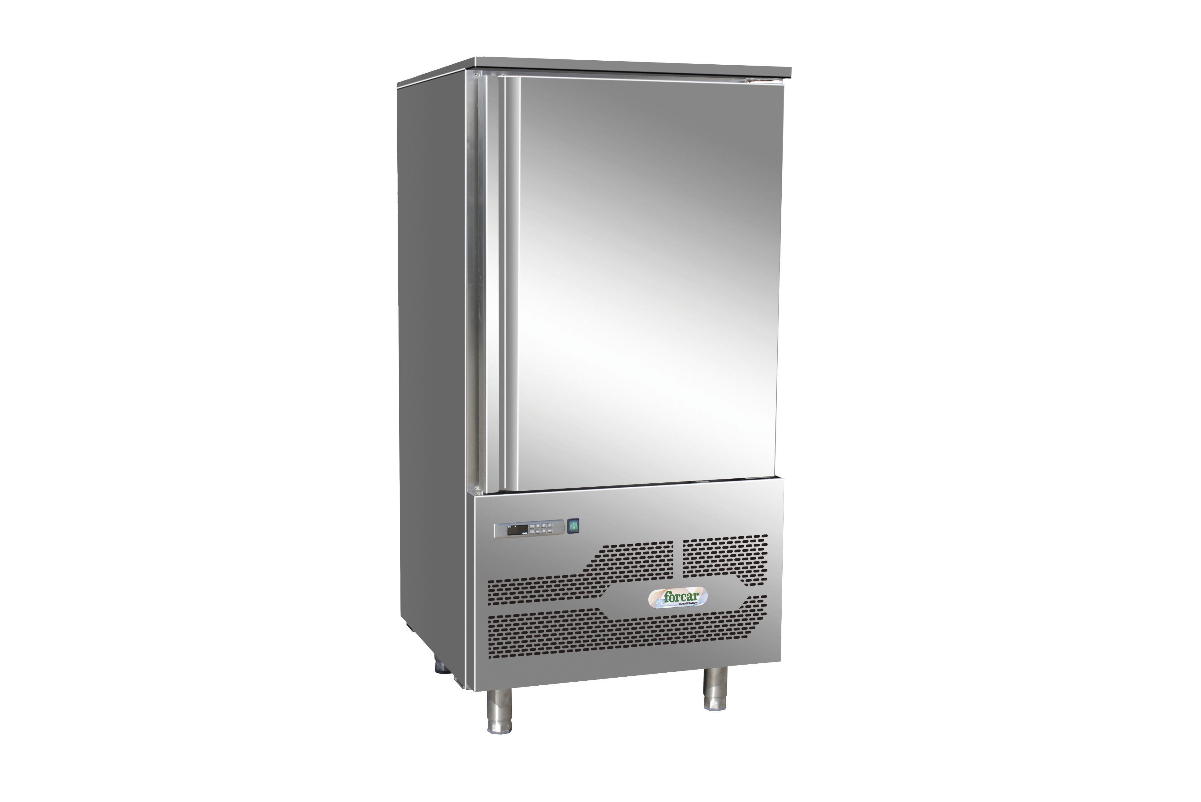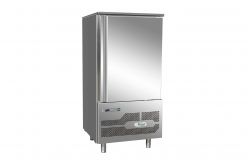 Abbattitore realizzato in acciaio inox AISI 304, con finitura esterna satinata Scotch Brite e dotato di piedini regolabili, spessore isolamento 60mm con schiuma alta densità 42kg/m3, cella interna con angoli arrotondati e guide adatte per contenere bacinelle GN1/1 o 600X400. Dispone di porta reversibile con guarnizione magnetica asportabile esonda per misurazione temperatura al cuore del prodotto. Infine micro porta magnetico per blocco ventilatore evaporatore, controllo elettronico, svuotamento manuale dell'acqua di sbrinamento, sbrinamento a ventilazione e 4 cicli di funzionamento.