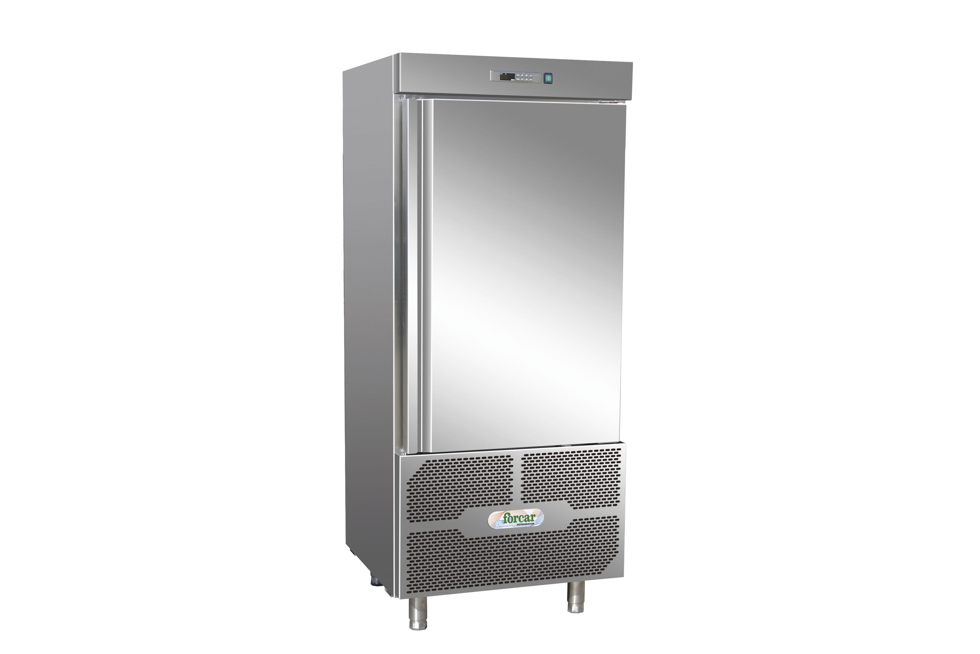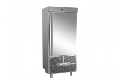 Abbattitore realizzato in acciaio inox AISI 304, con finitura esterna satinata Scotch Brite e dotato di piedini regolabili, spessore isolamento 60mm con schiuma alta densità 42kg/m3, cella interna con angoli arrotondati e guide adatte per contenere bacinelle GN1/1 o 600X400. Dispone di porta reversibile con guarnizione magnetica asportabile esonda per misurazione temperatura al cuore del prodotto. Infine micro porta magnetico per blocco ventilatore evaporatore, controllo elettronico, svuotamento manuale dell'acqua di sbrinamento, sbrinamento a ventilazione e 4 cicli di funzionamento.