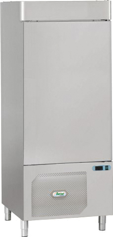 Abbattitore realizzato in acciaio inox AISI 304, con finitura esterna satinata Scotch Brite e dotato di piedini regolabili, spessore isolamento 60mm con schiuma alta densità 42kg/m3, cella interna con angoli arrotondati e guide adatte per contenere bacinelle GN1/1 o 600X400. Dispone di porta reversibile con guarnizione magnetica asportabile esonda per misurazione temperatura al cuore del prodotto. Infine micro porta magnetico per blocco ventilatore evaporatore, controllo elettronico, svuotamento manuale dell'acqua di sbrinamento, sbrinamento a ventilazione e 4 cicli di funzionamento.