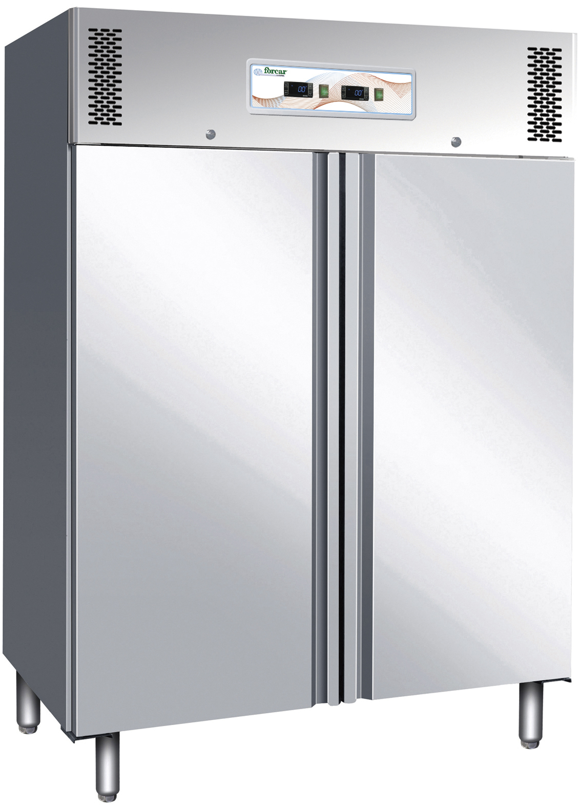 Armadio refrigerato realizzato in acciaio inox AISI 304, dotato di piedini regolabili, controllo temperatura elettronico con termostato digitale e refrigerazione ventilata. Gruppo incorporato ed evaporatore posizionato a scomparsa, con trattamento anticorrosione. Vano motore con fianchi coibentati. Dispone di resistenza elettrica intorno alla cornice (per l'eliminazione della condensa) e sbrinamento automatico con resistenza elettrica e controllo automatico della temperatura di sbrinamento. Evaporazione automatica dell'acqua di condensa. Porta (chiusura porta con chiave) con molla di ritorno e reversibile escluso GNV600. Guarnizione porta estraibile senza utensili. Luce interna. Fondo con angoli arrotondati. Pannelli esterni di fondo e schienale in lamiera galvanizzata.
