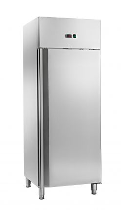 Armadio refrigerato gastronomia con struttura interna ed esterna realizzata interamente in acciaio inox AISI304. Spessore isolamento 60 mm. Refrigerazione statica con ventilatore per uniformare la temperatura. Termostato digitale per il controllo della temperatura. Resistenza elettrica inserita nella cornice della porta per l'eliminazione della condensa. Raccolta acqua di condensa con bacinella. Lo sbrinamento avviene quando il compressore è fermo. Porta reversibile. Cella con angoli arrotondati per facilitare la pulizia. Guarnizione magnetica su 4 lati facilmente estraibile. Piedini in AISI304 regolabili. Chiusura porta con chiave. Pannelli esterni di fondo e posteriore in acciaio zincato.