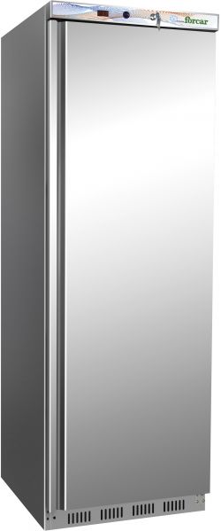 Armadio refrigerato con struttura esterna in acciaio inox, interno ABS e pannelli esterni di fondo e retro in lamiera zincata. Refrigerazione statica con ventilatore interno per uniformare la temperatura.