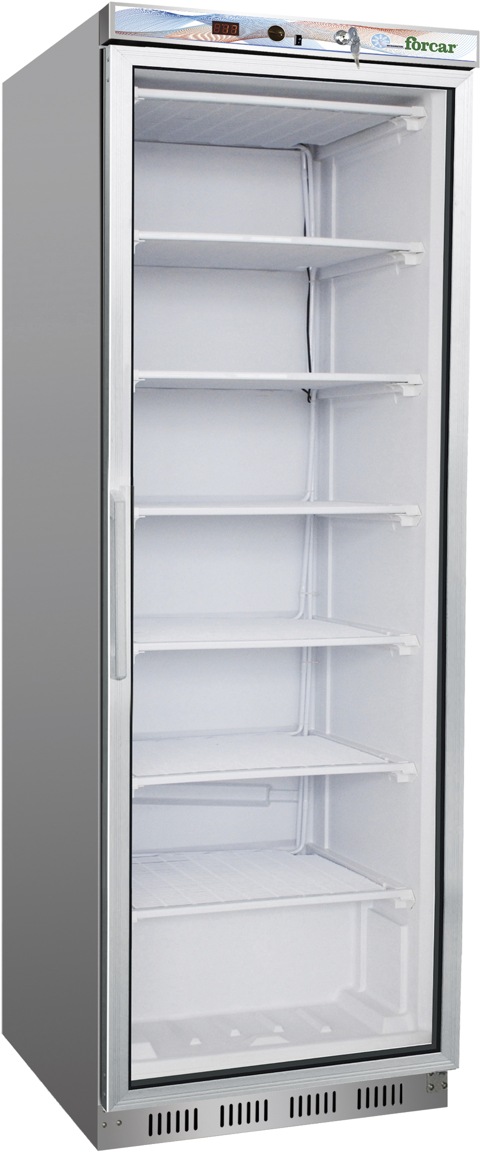 Armadio refrigerato con struttura esterna in acciaio inox, interno ABS e pannelli esterni di fondo e retro in lamiera zincata. Refrigerazione statica con ventilatore interno per uniformare la temperatura.
