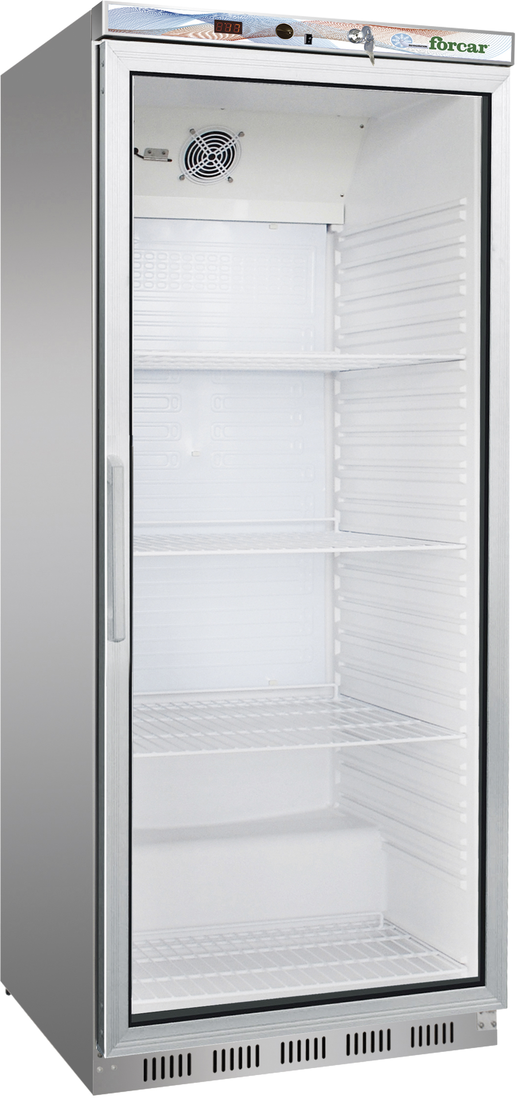 Armadio refrigerato con struttura esterna in acciaio inox, interno ABS e pannelli esterni di fondo e retro in lamiera zincata. Refrigerazione statica con ventilatore interno per uniformare la temperatura.