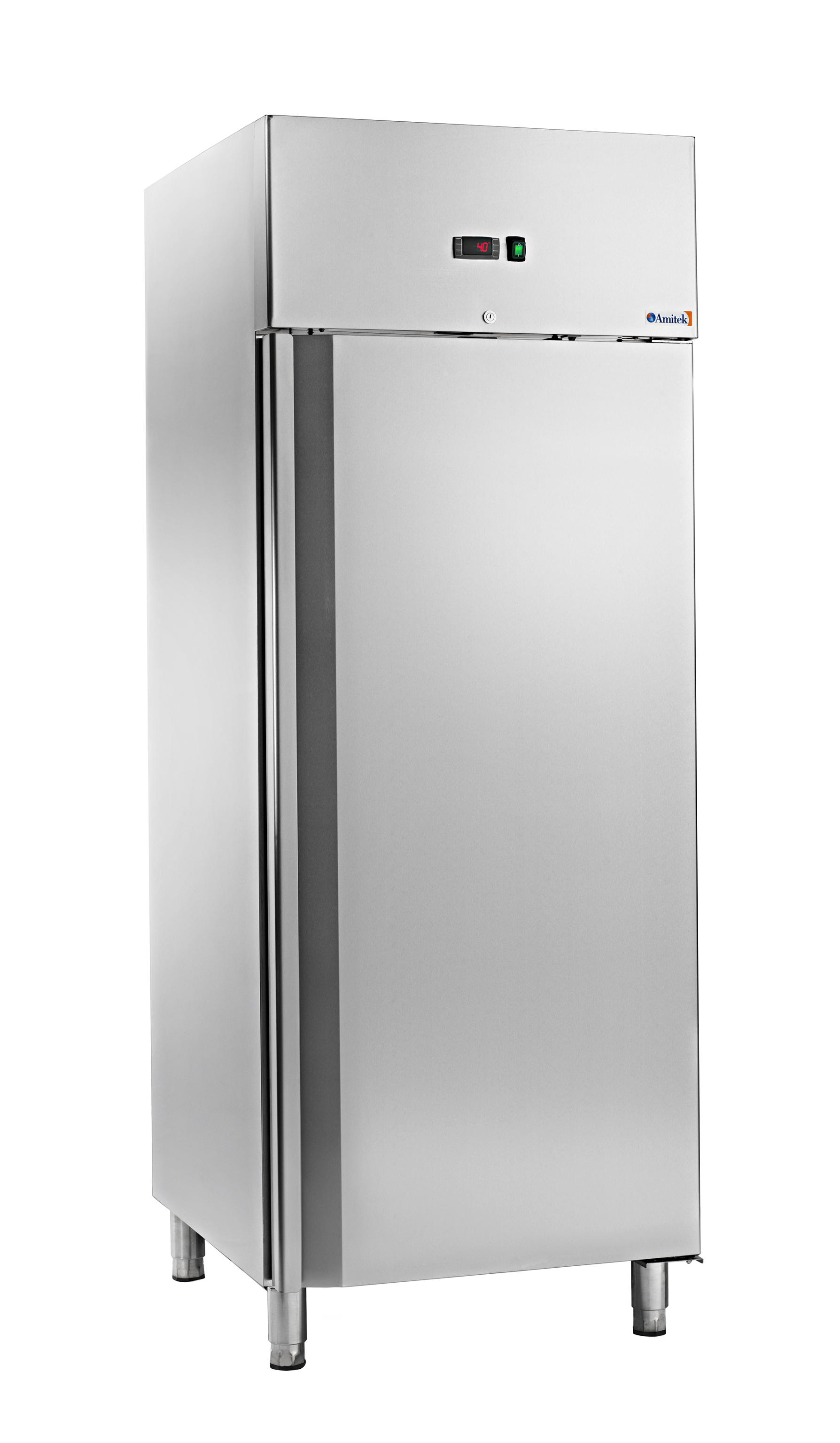 Armadio refrigerato realizzato in acciaio inox AISI 304, dotato di piedini regolabili, controllo temperatura elettronico con termostato digitale e refrigerazione ventilata. Gruppo incorporato ed evaporatore posizionato a scomparsa, con trattamento anticorrosione. Vano motore con fianchi coibentati. Dispone di resistenza elettrica intorno alla cornice (per l'eliminazione della condensa) e sbrinamento automatico con resistenza elettrica e controllo automatico della temperatura di sbrinamento. Evaporazione automatica dell'acqua di condensa. Porta (chiusura porta con chiave) con molla di ritorno e reversibile escluso GNV600. Guarnizione porta estraibile senza utensili. Luce interna. Fondo con angoli arrotondati. Pannelli esterni di fondo e schienale in lamiera galvanizzata.
