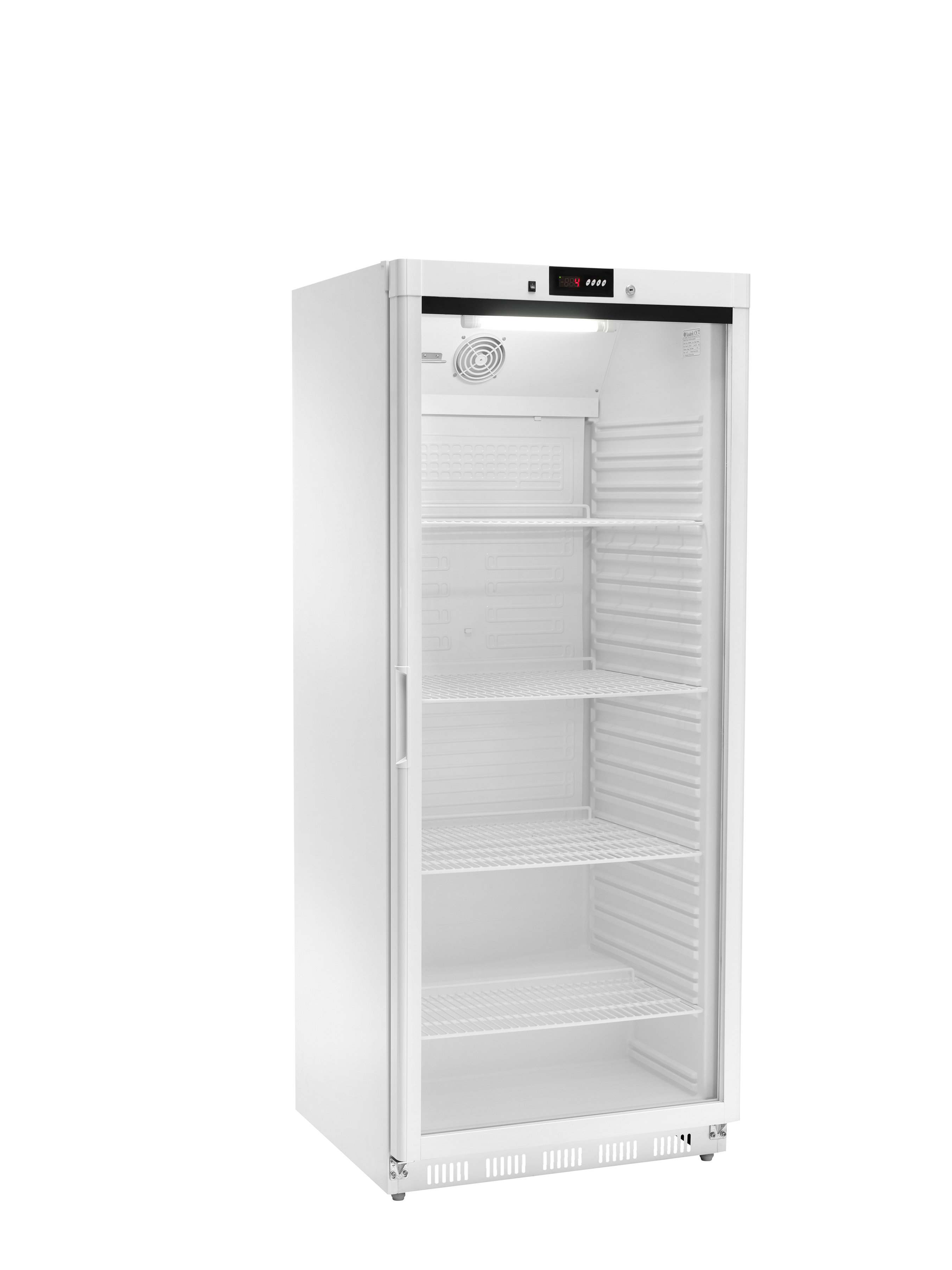 Armadio gastronomia refrigerato statico con porta a vetri realizzato esternamente in acciaio verniciato bianco con la cornice della porta in plastica bianca, e internamente in ABS. Possiede la refrigerazione statica a piastra con ventilatore per uniformare la temperatura, termostato digitale integrato nella porta e isolamento 40mm. Lo sbrinamento avviene quando il compressore è fermo. Possiede, inoltre, l'evaporazione dell'acqua di condensa automatica, chiusura porta con chiave, guarnizione magnetica facilmente estraibile e luce interna con interruttore ON/OFF. All'interno ci sono angoli arrotondati per facilitare la pulizia.