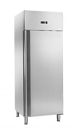 Armadio refrigerato snack realizzato in acciaio inox AISI 304. Refrigerazione statica con ventilatore e convogliatore d'aria interno per uniformare la temperatura. Gruppo incorporato in vano superiore. Vano motore con fianchi coibentati. Controllo temperatura elettronico con termostato digitale. Resistenza elettrica intorno alla cornice porta per eliminazione della condensa. Eliminazione dell'acqua di condensa tramite bacinella. Porta con molla di ritorno e reversibile. Chiusura porta con chiave. Guarnizione porta estraibile senza utensili. Fondo con angoli arrotondati. Pannelli esterni di fondo e schienale in lamiera galvanizzata. Piedini in acciaio Inox Aisi 304 regolabili in altezza.