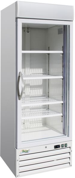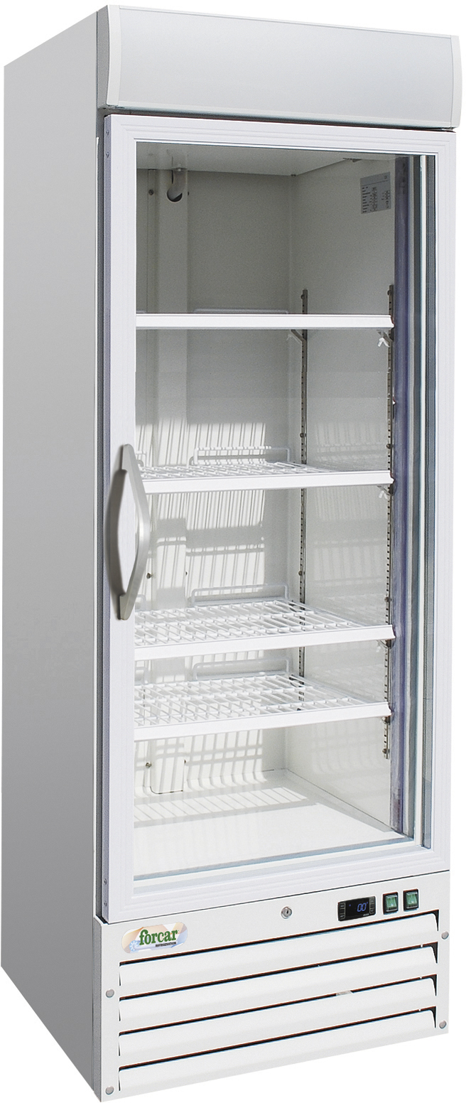 Armadio refrigerato snack con struttura interna ed esterna in lamiera verniciata epossidica bianca e pannelli esterni di fondo e retro in lamiera zincata. E' dotato di luce interna, refrigerazione ventilata, porta con doppio vetro, resistenza anti condensa e chiusura a molla di ritorno.